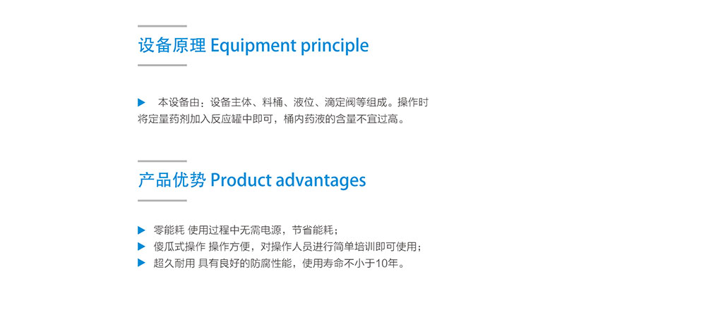 :1、零能耗,使用過程中不需電源; 2、簡易操作; 3、超久耐用,防腐,使用壽命超長;